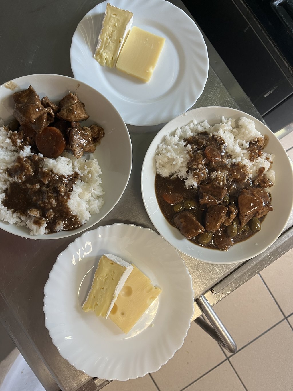 Après l’effort, 130 repas ont été partagés dans la bonne humeur. Le repas, préparé avec soin par les bénévoles, a régalé les participants avec un sauté de porc aux olives, une assiette de fromages et de délicieuses profiteroles.