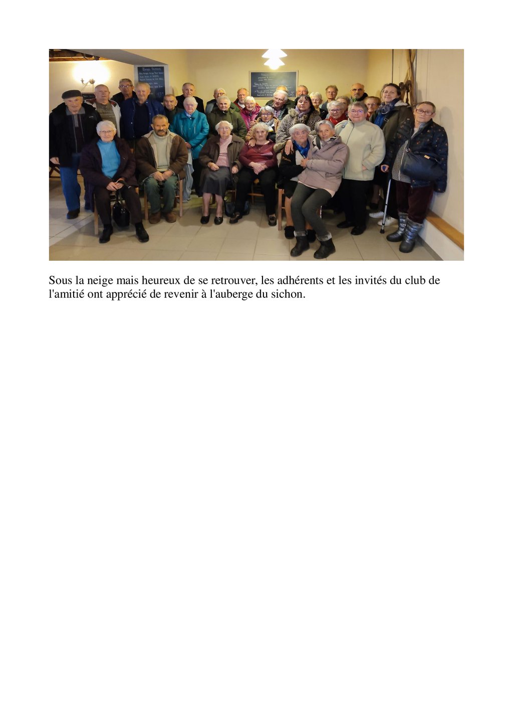 Sous la neige mais heureux de se retrouver, les adhérents et les invités du club de l'amitié ont apprécié de revenir à l'auberge du sichon.