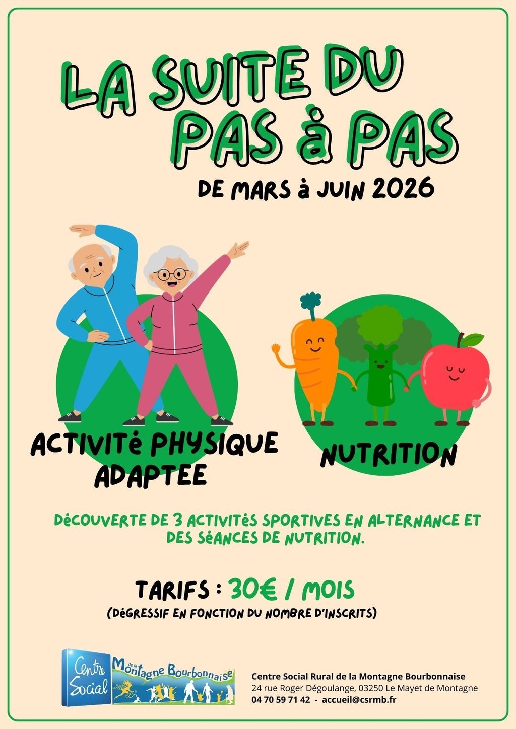 Pour plus d'informations et inscriptions, contactez le Centre Social au 04 70 59 71 42 ou accueil@csrmb.fr