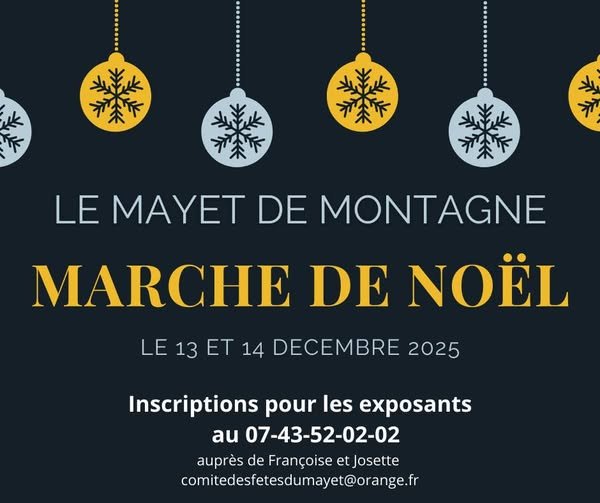 Le comité des fêtes du Mayet de Montagne vous propose un Marché de Noël artisanal et gourmand le week-end du 13 et 14 Décembre 2025 à la Boulaire.