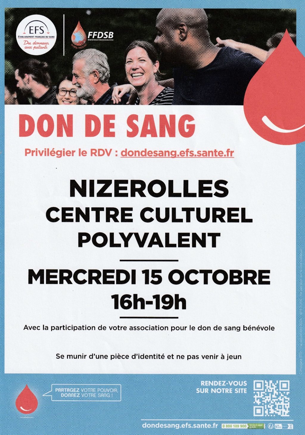 La collecte du mois d'octobre se tiendra à Nizerolles le mercredi 15 octobre de 16h à 19h.