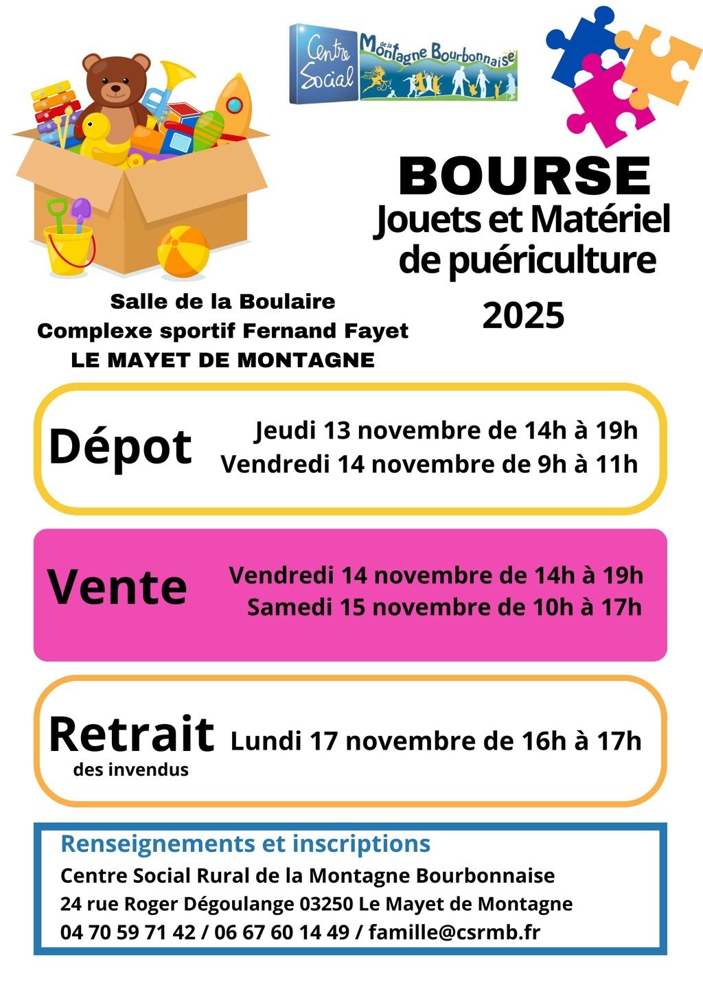 BOURSE JOUETS / MATERIEL PUERICULTURE / CENTRE SOCIAL