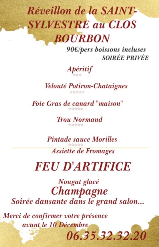 Le Clos Bourbon vous propose un Réveillon de St Sylvestre à 90€/personne.