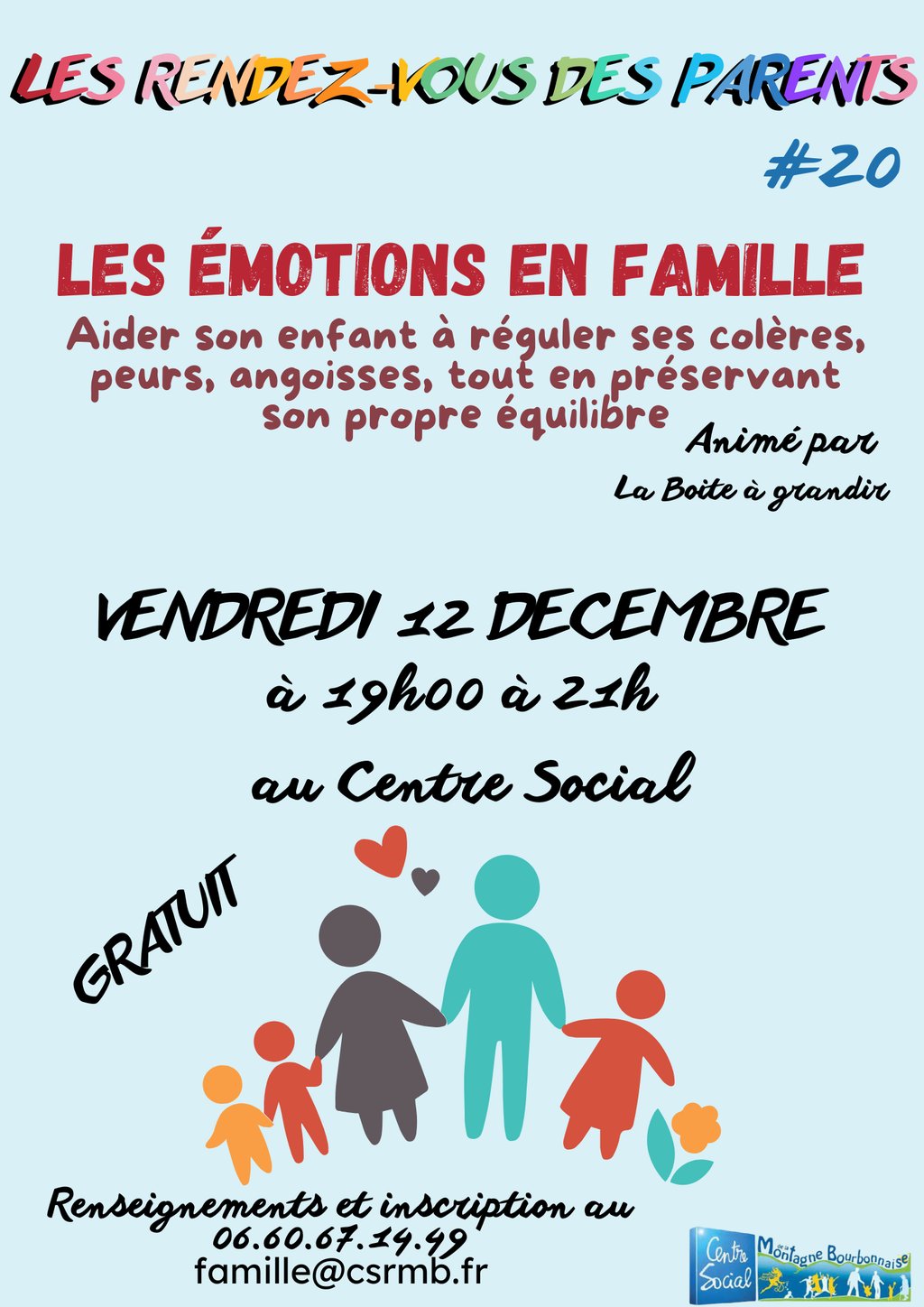 Le centre social de la Montagne Bourbonnaise vous propose le rendez-vous des parents : "Les émotions en famille".