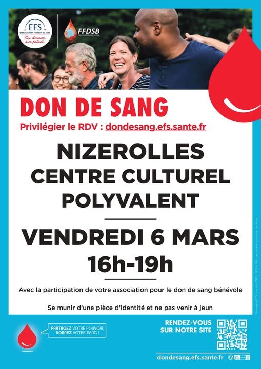 La collecte du mois de mars se tiendra à Nizerolles le vendredi 6 de 16h à 19h.