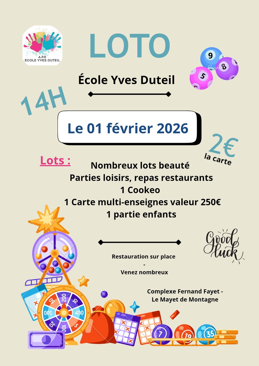 Loto de l'école Yves Duteil du Mayet de Montagne